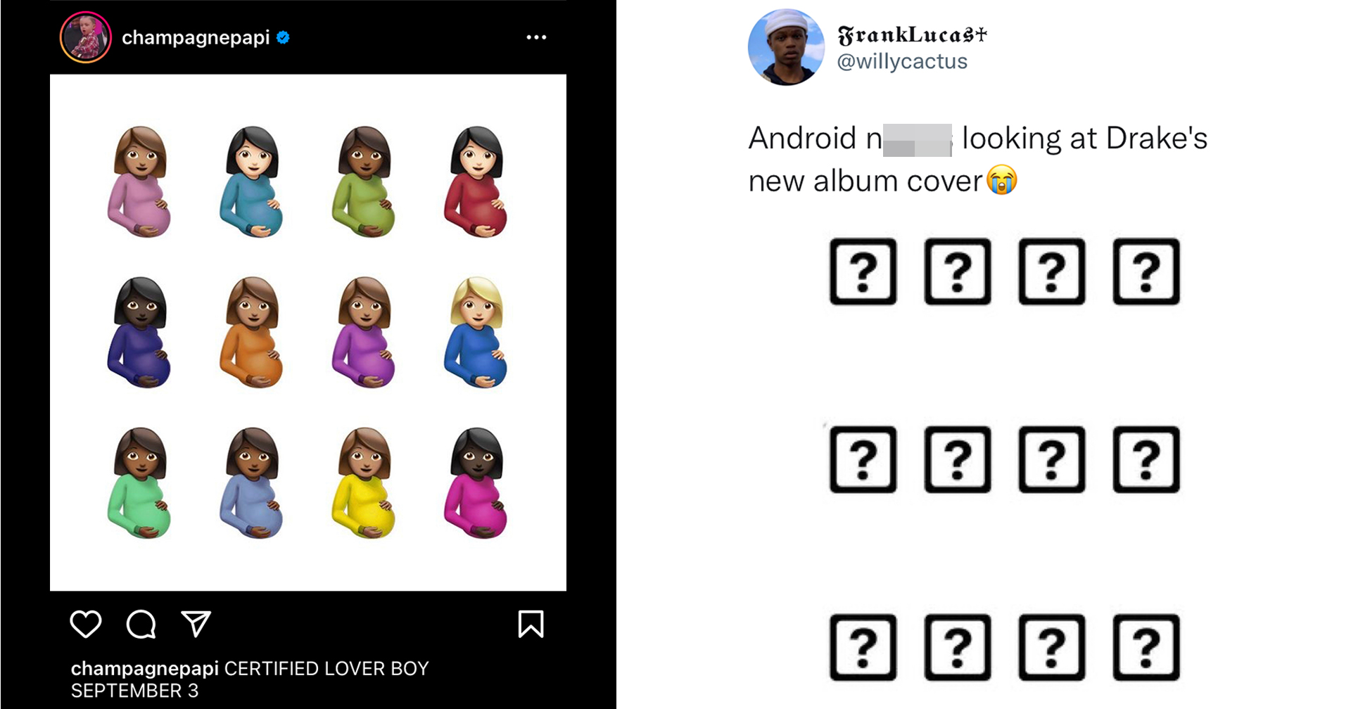 Drake announced the release date of his sixth album Certified Lover Boy on Instagram Monday. Longtime fans of the artist might also. Drakes album which drops on September 3 features a cover of 12 pregnant emojis in a variety of different skin tones and hair colors.